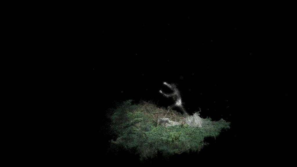 In a lush forest, an individual wanders peacefully. Immersed in nature, they observe the flora that surround them, when suddenly they come face to face with an absolute void, with the clear limits of the moving environment. From this void, nothingness expands like molten lava spreading over nature, destroying everything in its path. The protagonist tries to escape this phenomenon by any means necessary, but to no avail; they get caught up in it and find themselves weightless in the void, the darkness. This is followed by a series of encounters in which the characters struggle against the disappearance of nature. Lutte is a story in which bodies explore ways of coming together to restore the environment.